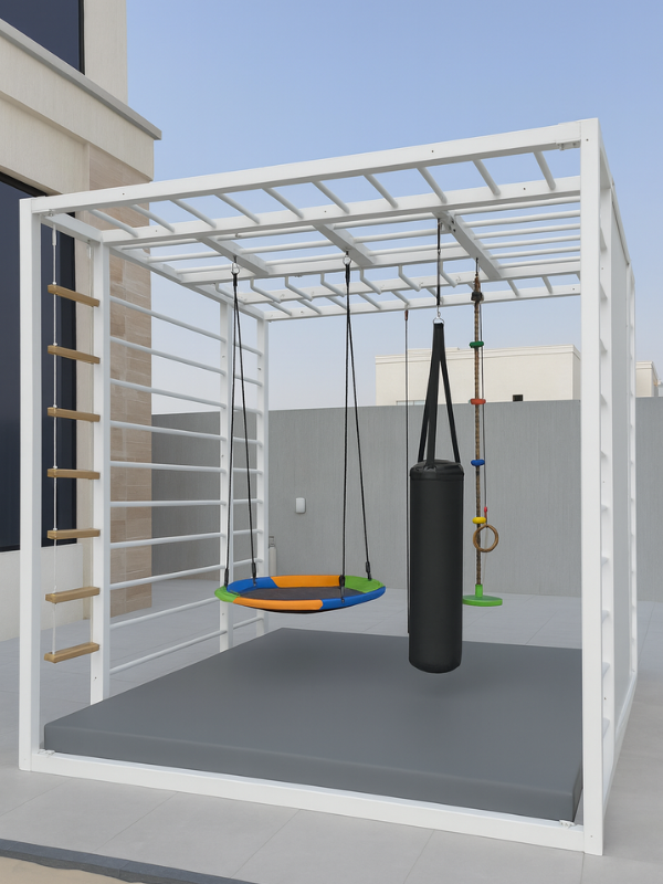 Designed with both elegance and functionality, this Outdoor Play Area provides a refined space for children to engage in healthy physical activity and imaginative play.