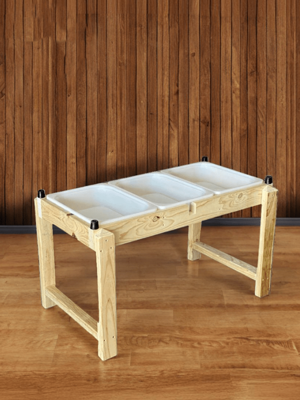 The Sand & Water Triple Tub Play Table offers a versatile and engaging outdoor activity station for children. Featuring three separate tubs, it allows simultaneous play with sand, water, or other sensory materials, promoting creativity and fine motor skills. Crafted for durability and easy cleaning, this table is ideal for educational and recreational use, encouraging hands-on exploration in a safe, organized environment.