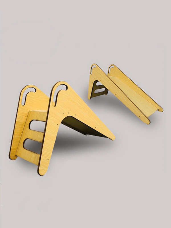 Compact wooden indoor slides for toddlers, designed for safe climbing and sliding with smooth edges.