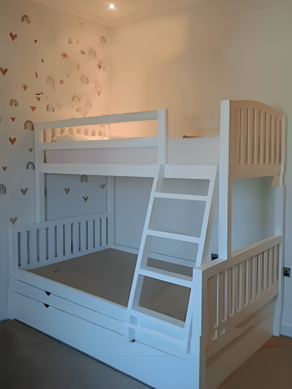This twin over trundle bed offers a refined solution for maximizing space without compromising style. Its elegant design includes a sturdy twin bed paired with a smoothly sliding trundle, perfect for accommodating guests or creating versatile sleeping arrangements. Crafted for durability and ease of use, this bed blends functionality with a sophisticated aesthetic suitable for any modern bedroom.
